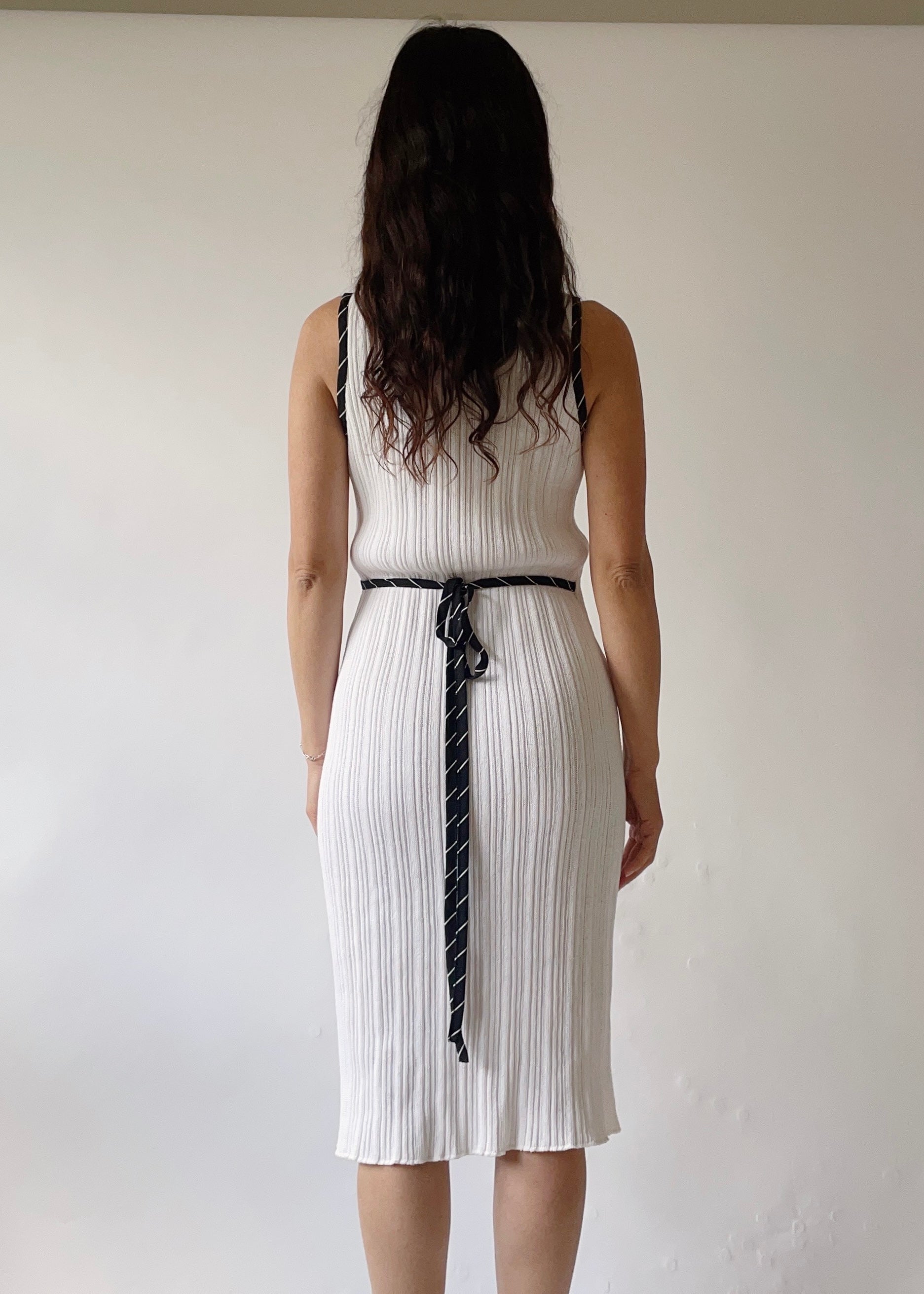A beautiful cotton wrap dress from the 90s by Michael Kors. A medium weight and flattering cotton with black trim.