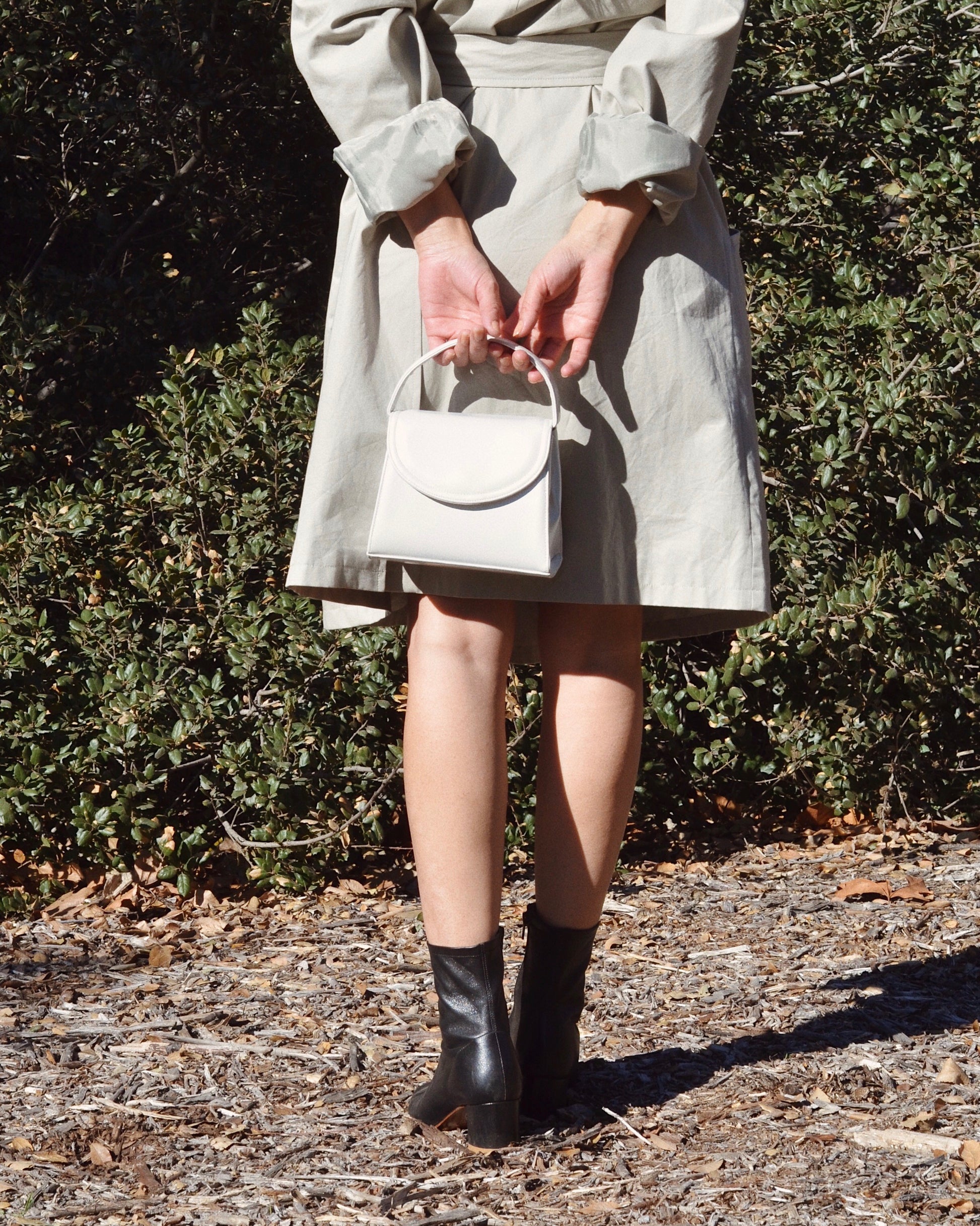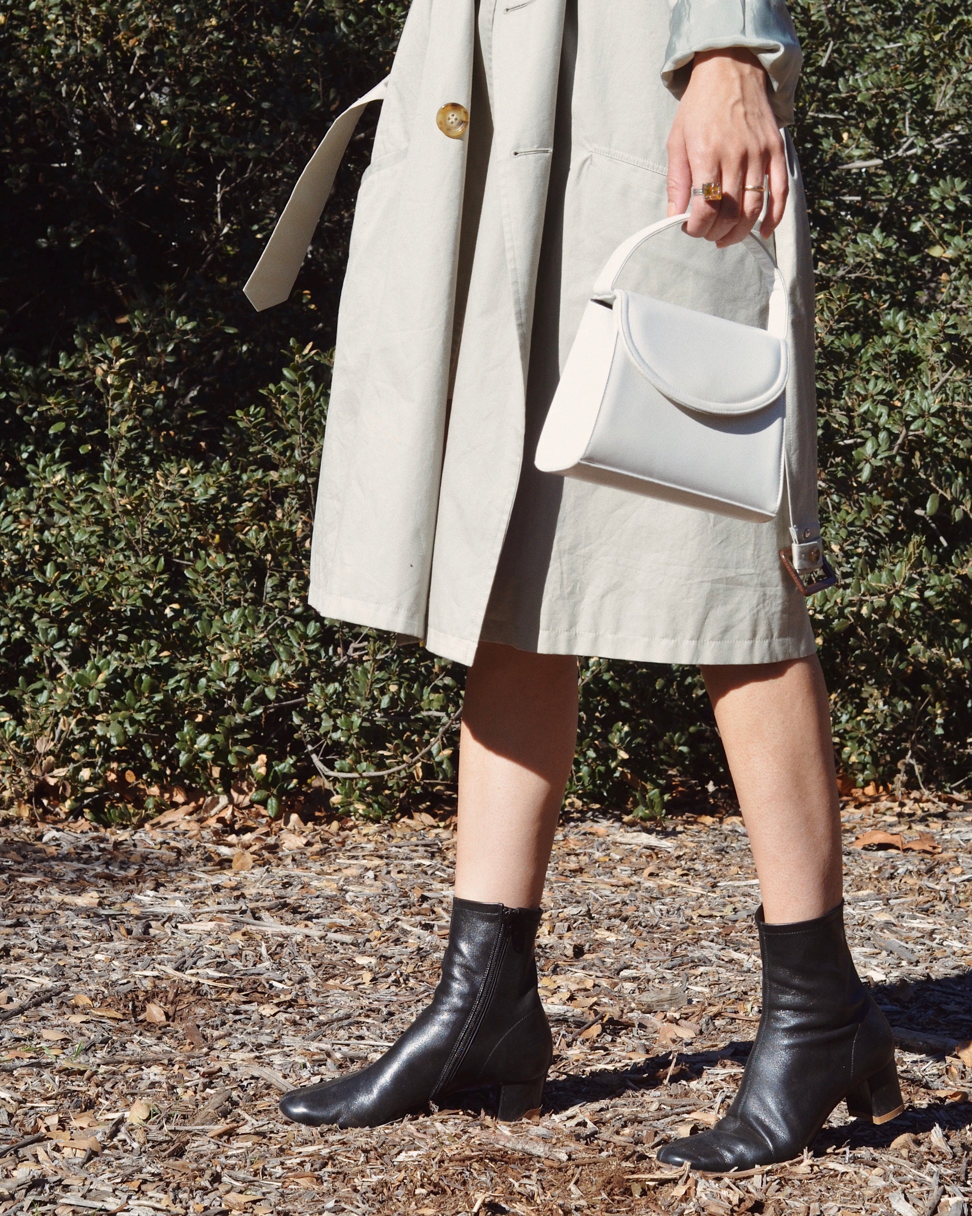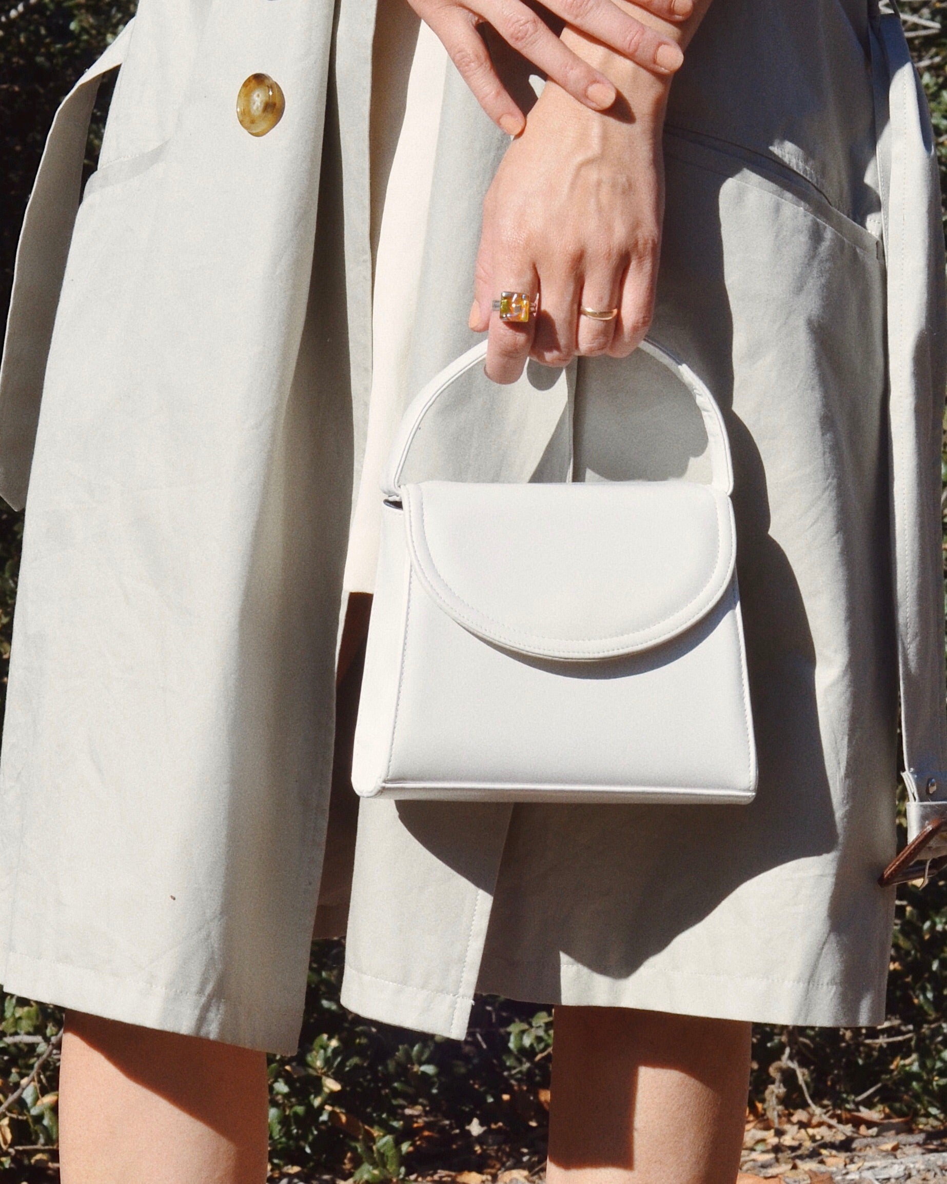 Once popular in the 90s in Los Angeles, Frenchy of California handbags are beautiful and durable. Pearl leather and gold tone accents. It measures 7 inches long and 5.5 inches tall. Separate detachable strap included. One minor impression on the leather but not noticeable. Similar style to ByFar’s mini bags. Small and so cute.