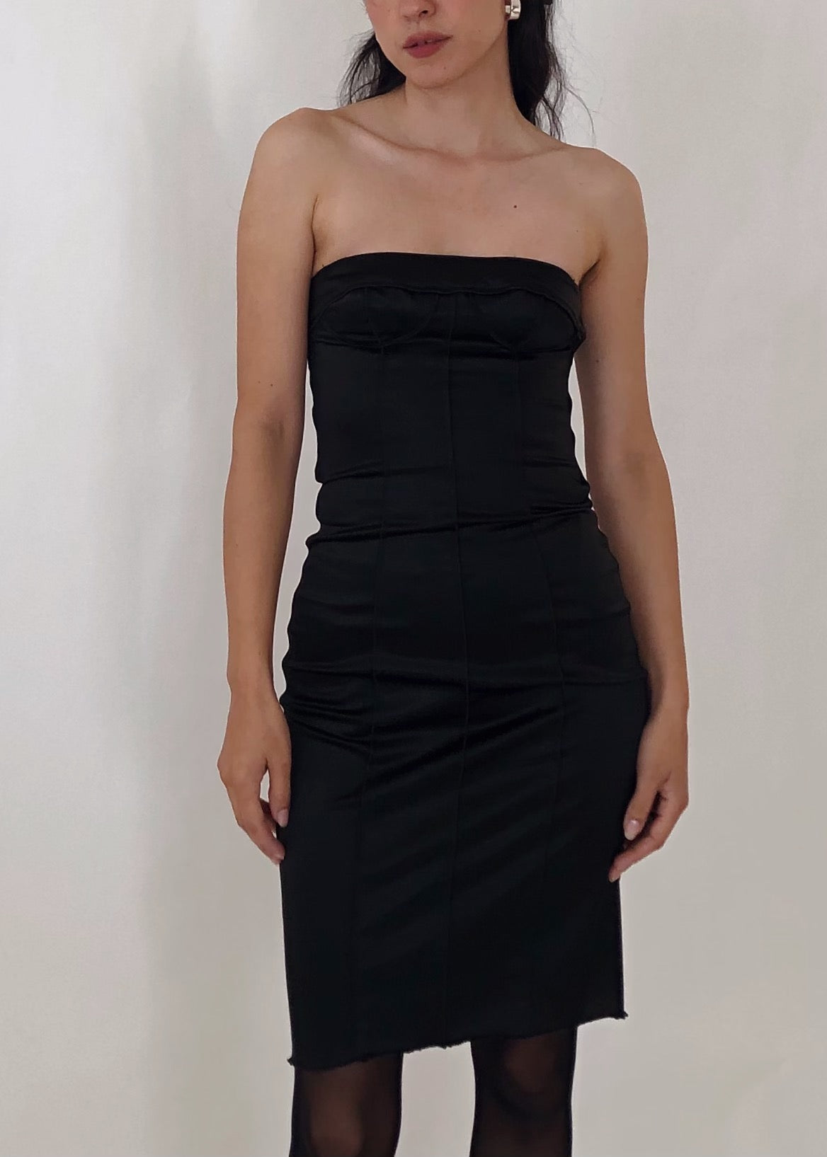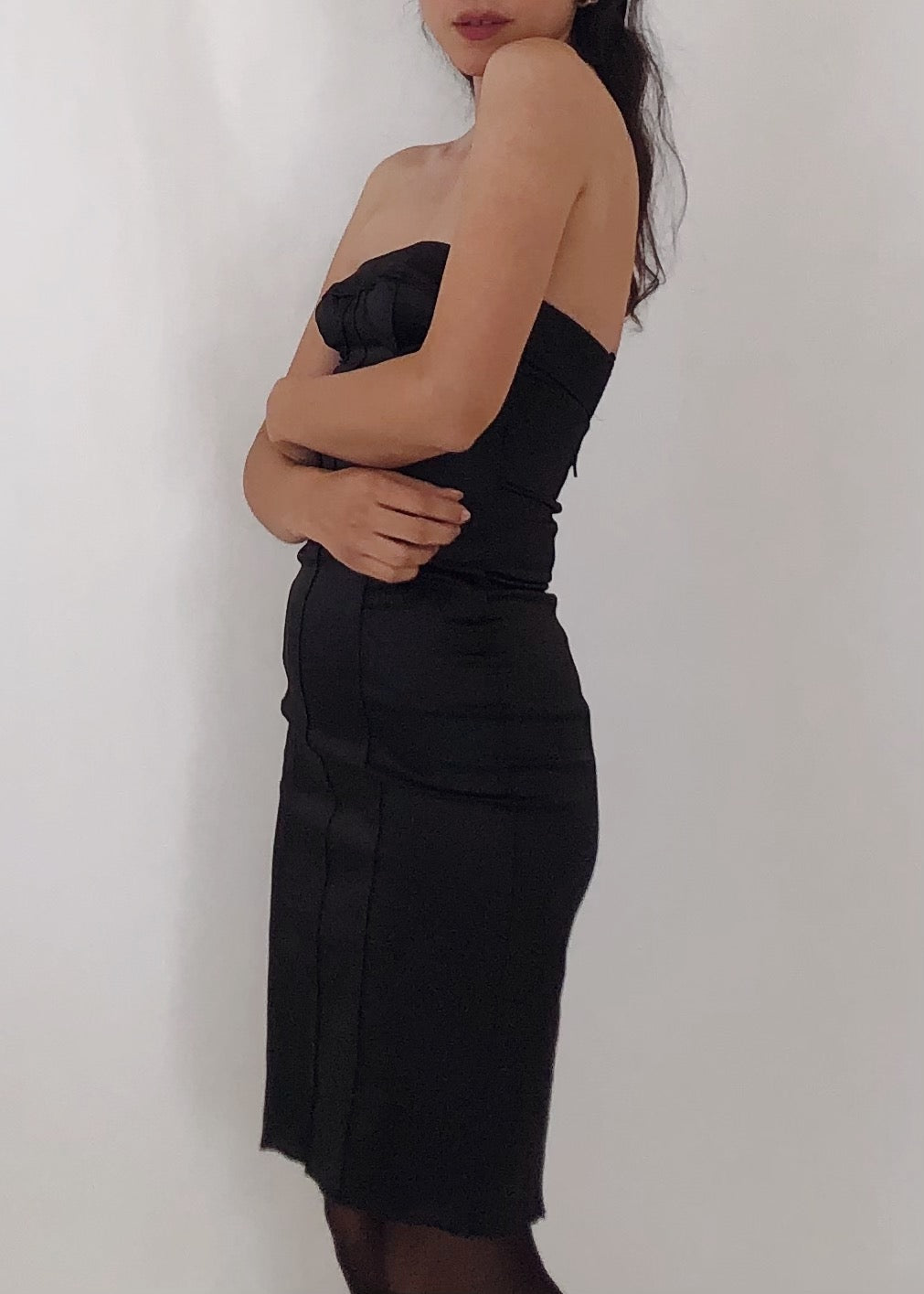 The most stunning little black corset dress by D&G. This dress has such a beautiful fit due to its inner boning and cup shape.