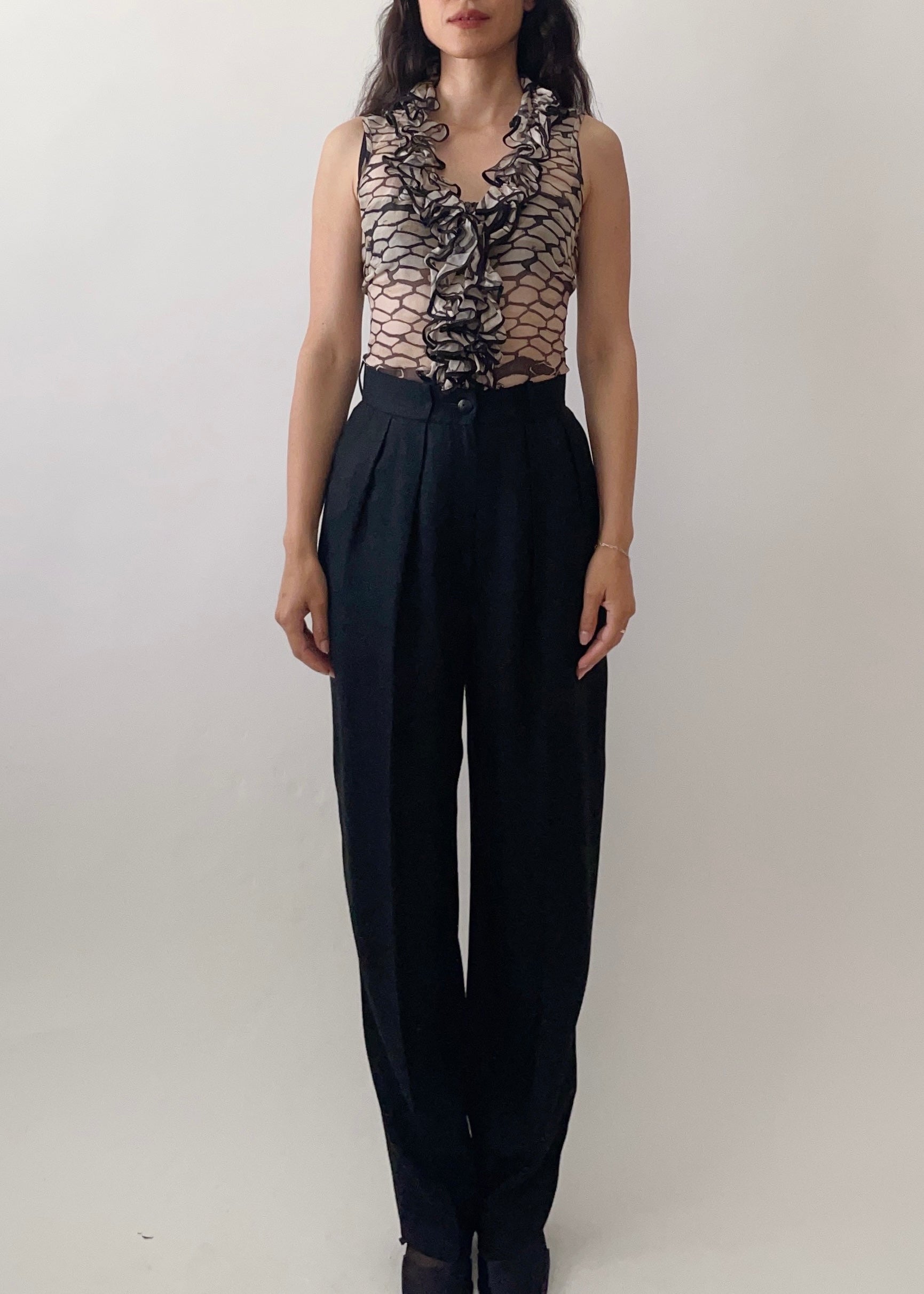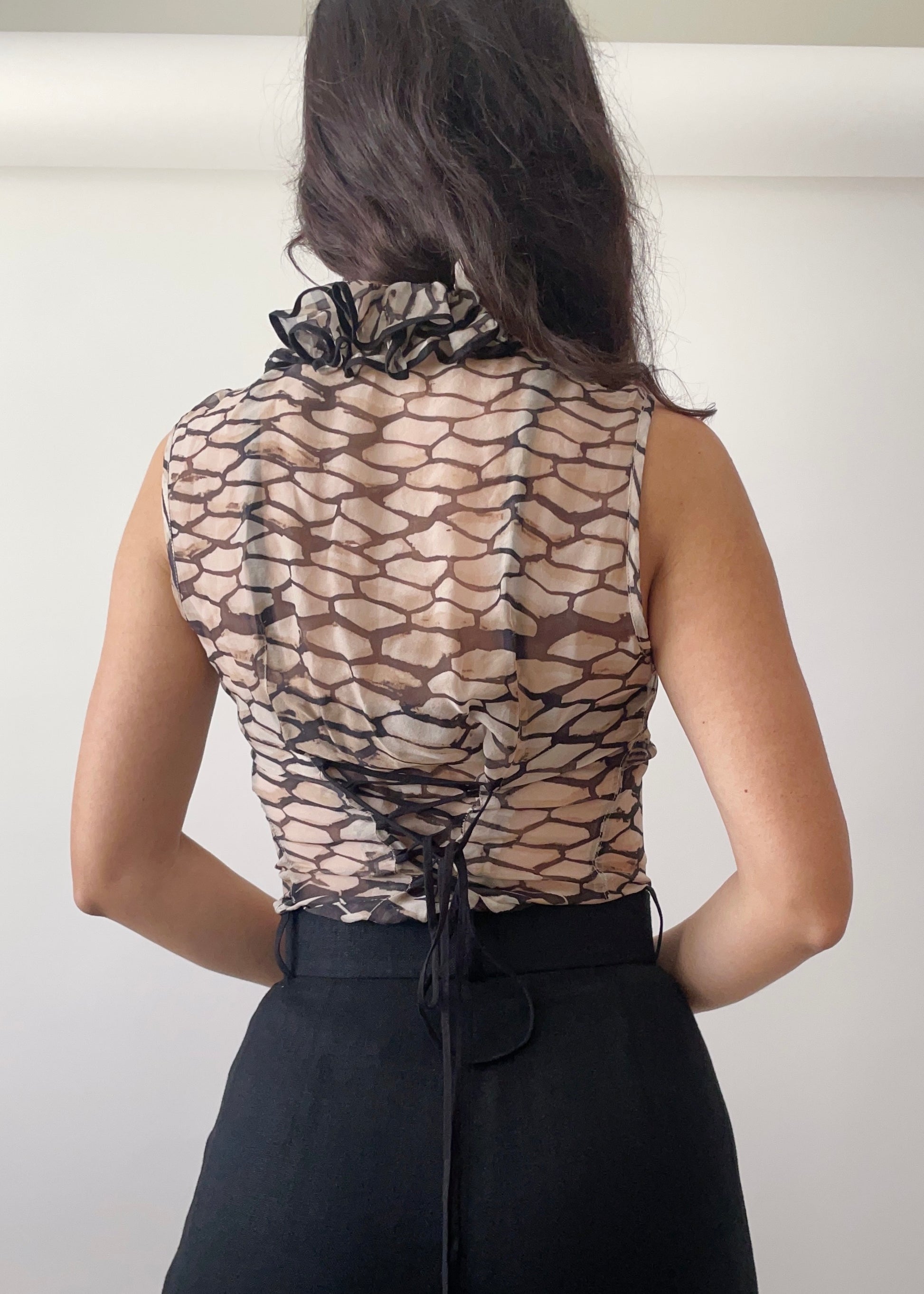 Beautiful ruffled silk corset by Anne Fontaine. It features a front subtle double zipper and corset lace on the back to shapely fit.