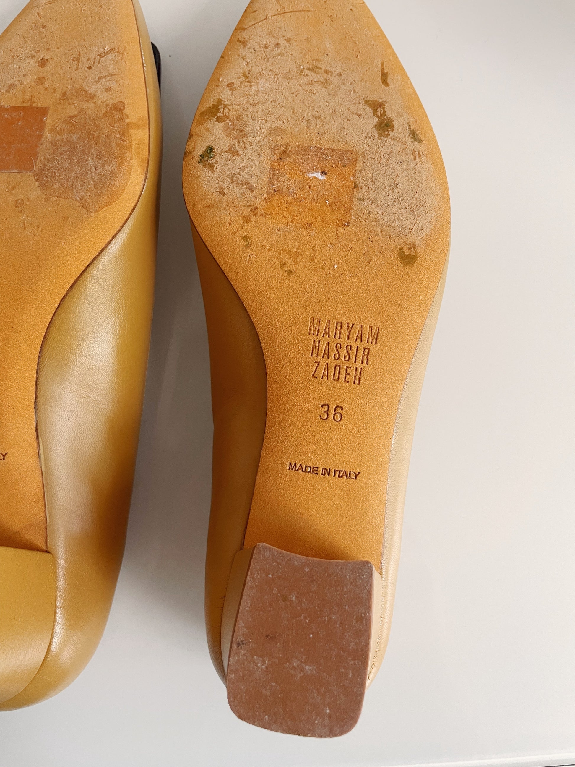 Beautiful Maryam Nassir Zadeh Cecil pump in the color honey. Gently worn with a minor scuff on right shoe (shown in photos).