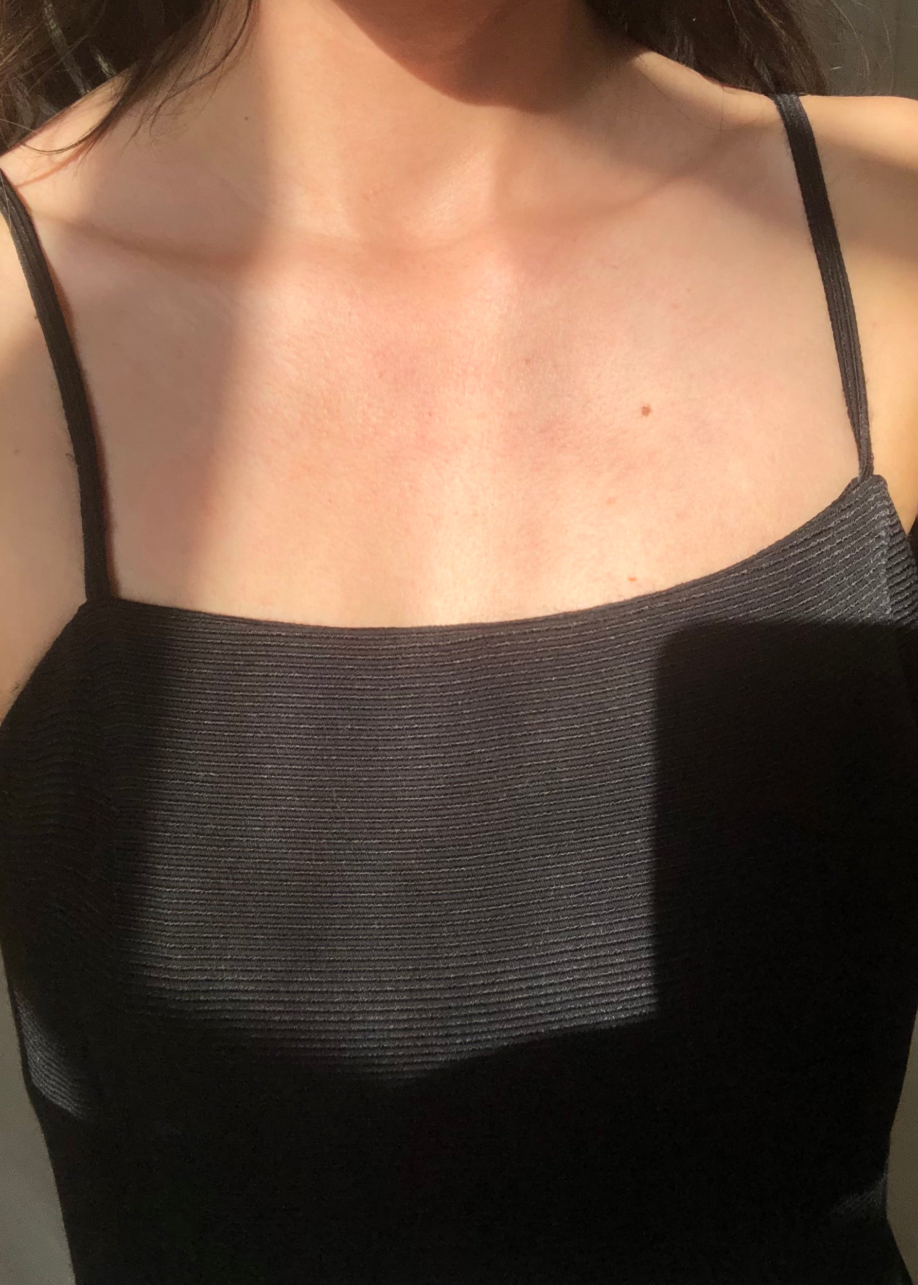 Vintage Giorgio Armani black ribbed dress with a beautiful silhouette. It features a small back slit. Made in Italy.
