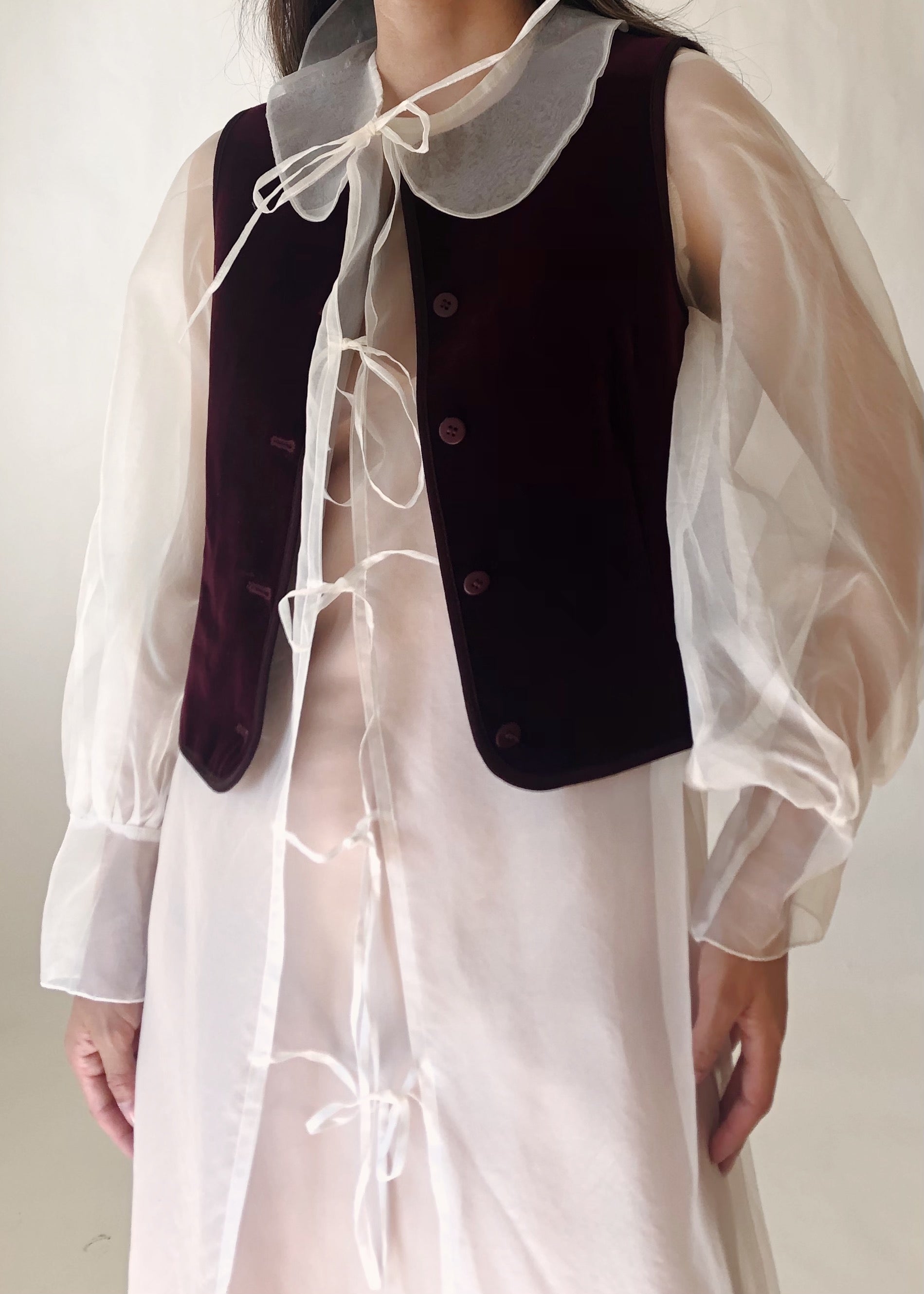 Vintage Jaeger burgundy velvet vest with a front button closure. Favorite layering piece.