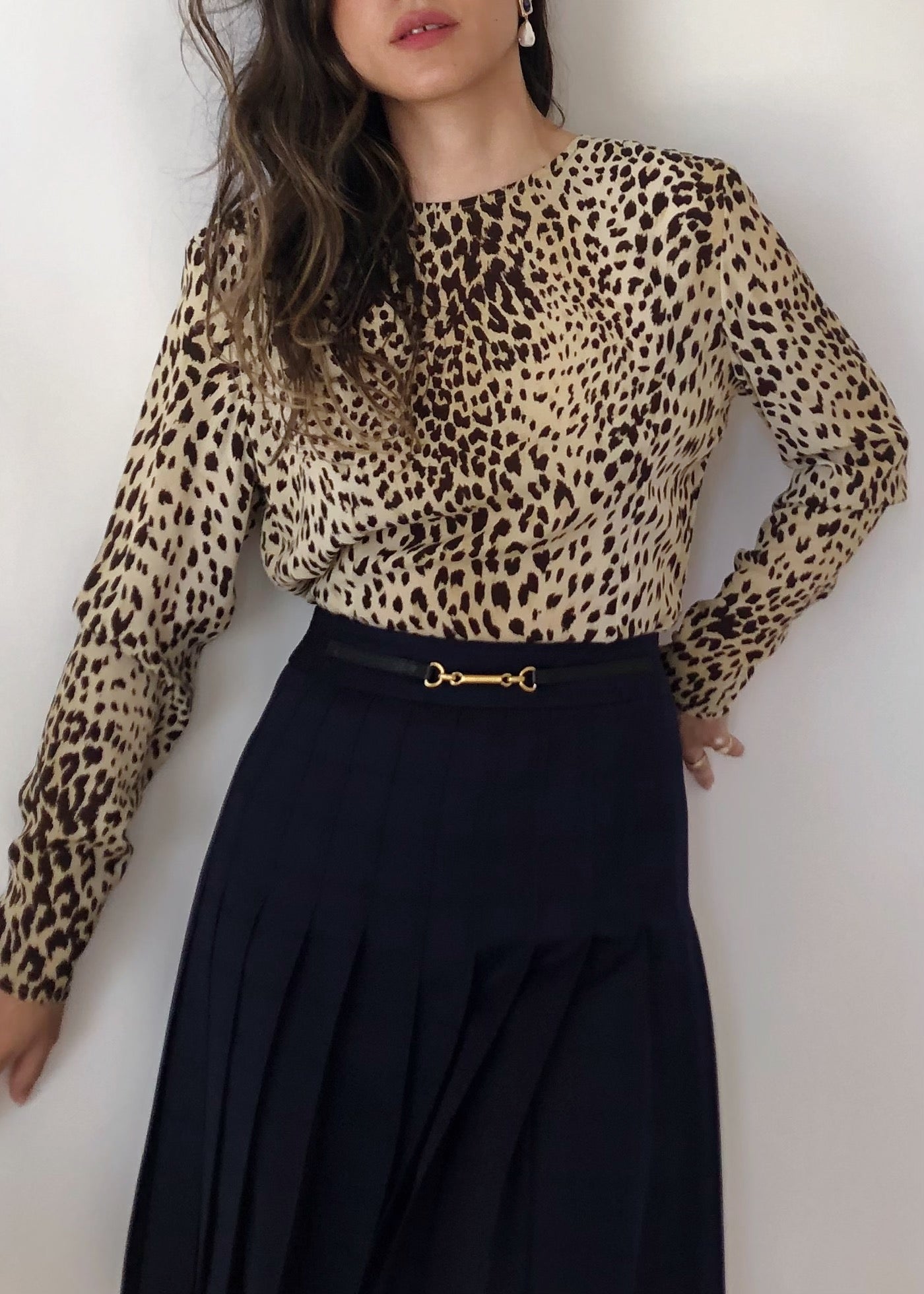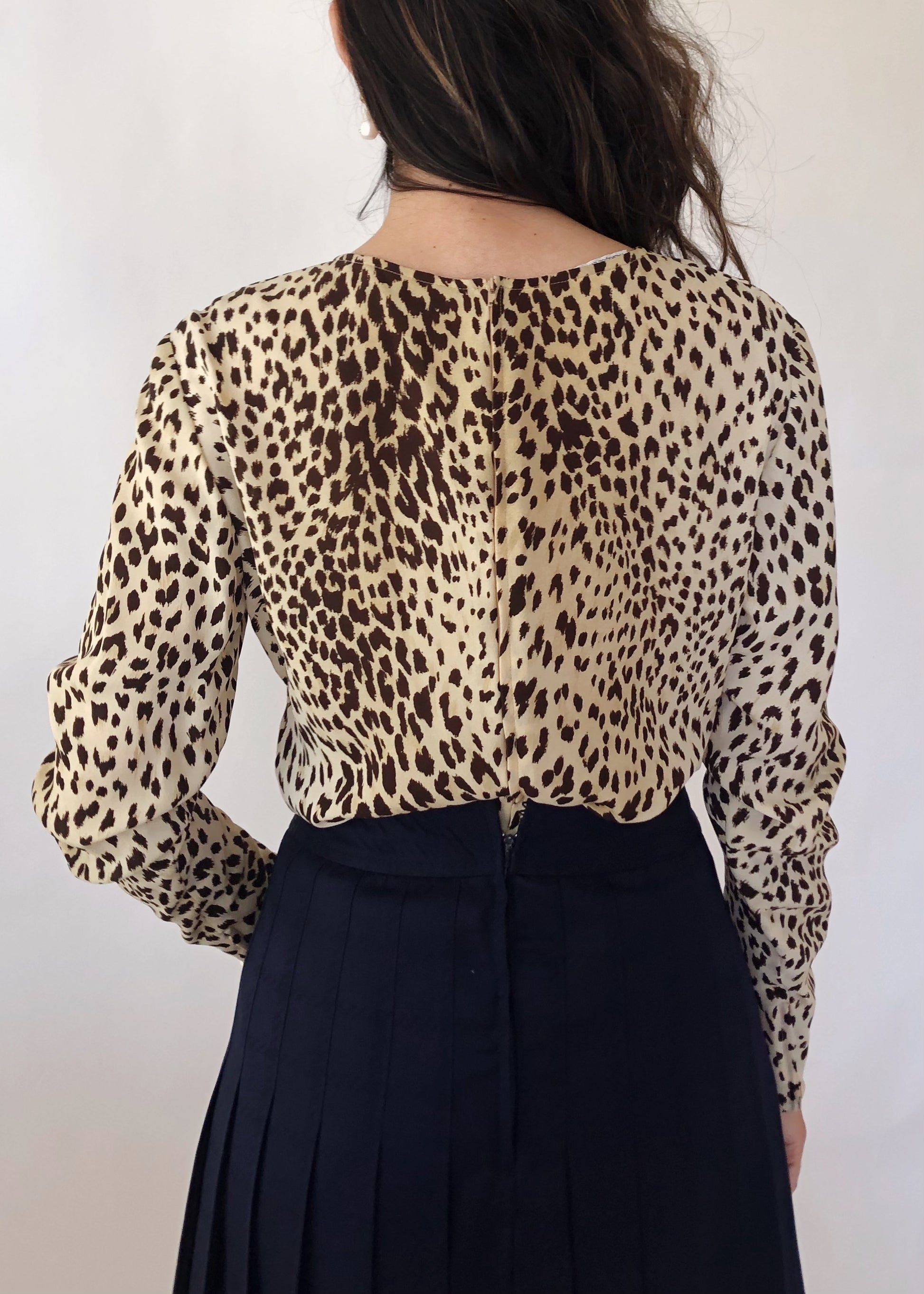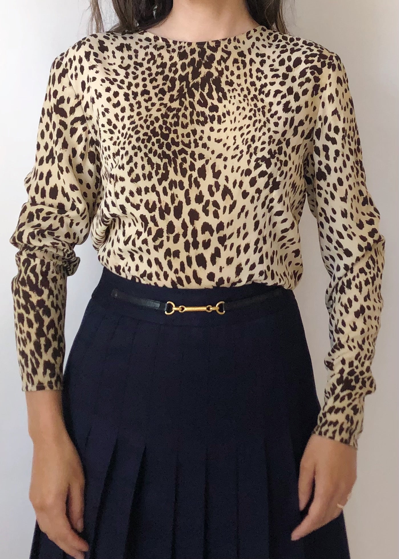 Vintage Valentino silk blouse in a beautiful animal print. Subtle zipper closure at back and sleeves.